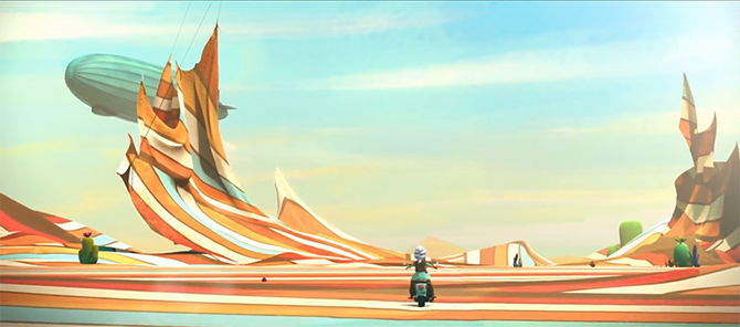 在這里有正在行走的萌萌搖滾仙人掌,七彩的賽道,軟綿綿的陸地,其實這里的一切都是奶奶為孫女編織的完美世界。這段美妙的旅途孫女一定終生難忘,但是再親的人也可能只是我們生命中的過客,不能陪我們走完所有的路,最后奶奶還是離開了孫女,但一起相處的快樂時光,卻給能給我們的生活留下種種感情印記,永遠(yuǎn)不會消失,在最后一個鏡頭孫女也踏上機(jī)車騎行之路,她也要像奶奶一樣,做一個很酷的人。